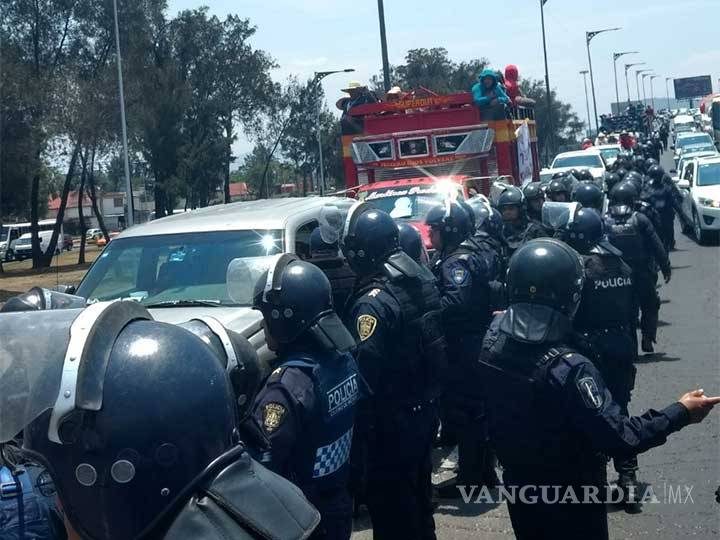 Más adelante, personal de la policía Metropolitana les impidió el paso y fueron regresados al estado de Puebla.