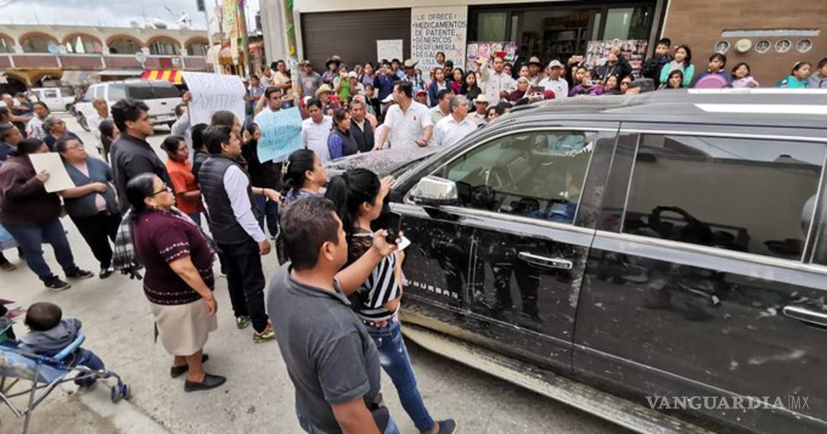 La caravana del presidente Andrés Manuel López Obrador fue retenida por habitantes de Ayutla Mixe, Oaxaca. Exigen abasto de agua potable, pues dicen llevan más de dos años sin acceso.