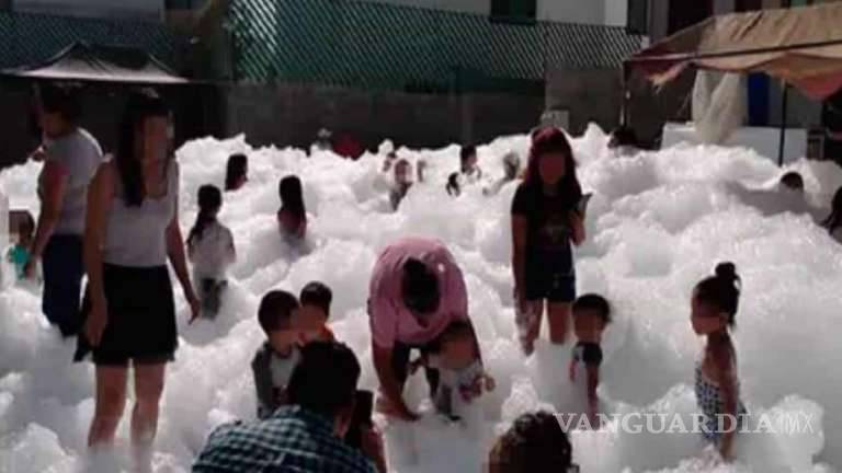 Hacen fiesta para niños ¡con espuma! en San Luis Potosí, pese a cuarentena