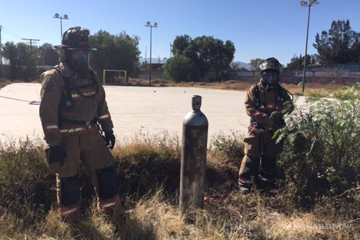 Tras el hallazgo del cilindro, personal de Bomberos y Protección Civil acordó la zona y procedió a la evacuación de 300 alumnos del turno matutino de la escuela primaria ubicada en la colonia Industrial Mexicana de esta ciudad.