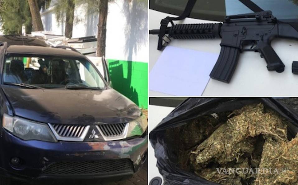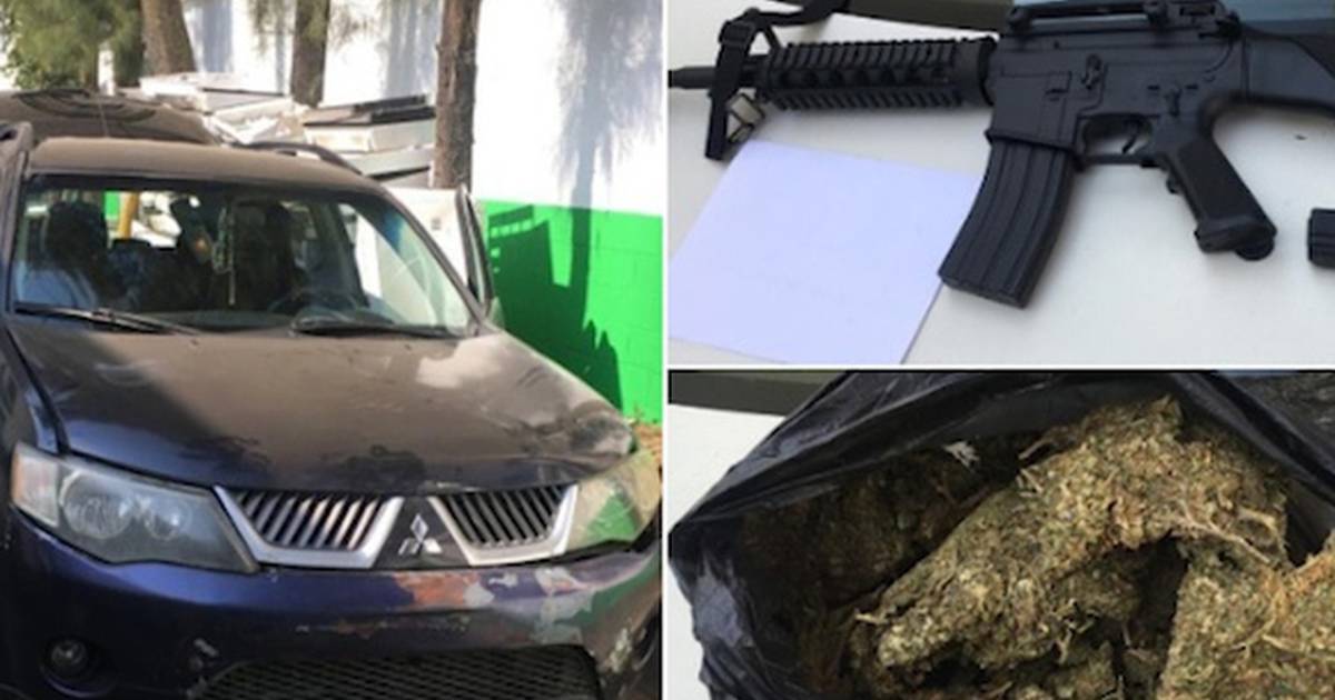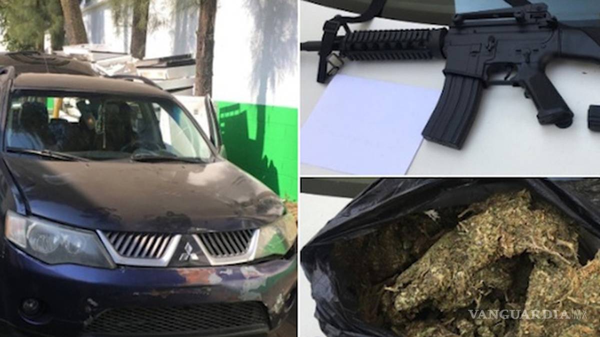 Durante una inspección a la camioneta, se hallaron dos armas réplica –un fusil de asalto y una pistola-, además de un kilo de mariguana.