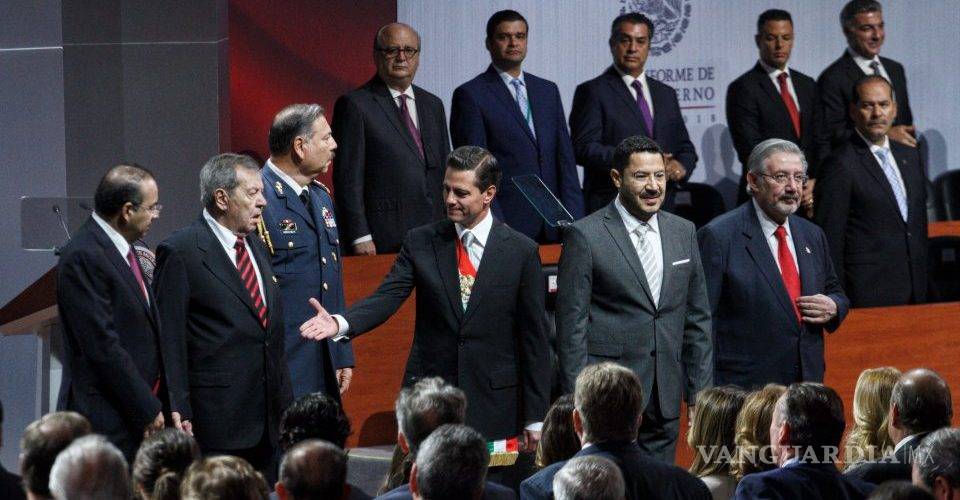 Desde su lugar, Hinojosa aplaudió las palabras de Peña Nieto cuando éste presumió que dejó “estabilidad política, social y económica”, y lo escuchó en silencio cuando admitió que, pese a los esfuerzos en el combate a la violencia, no deja un México en paz.