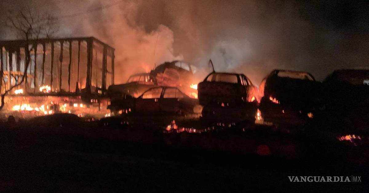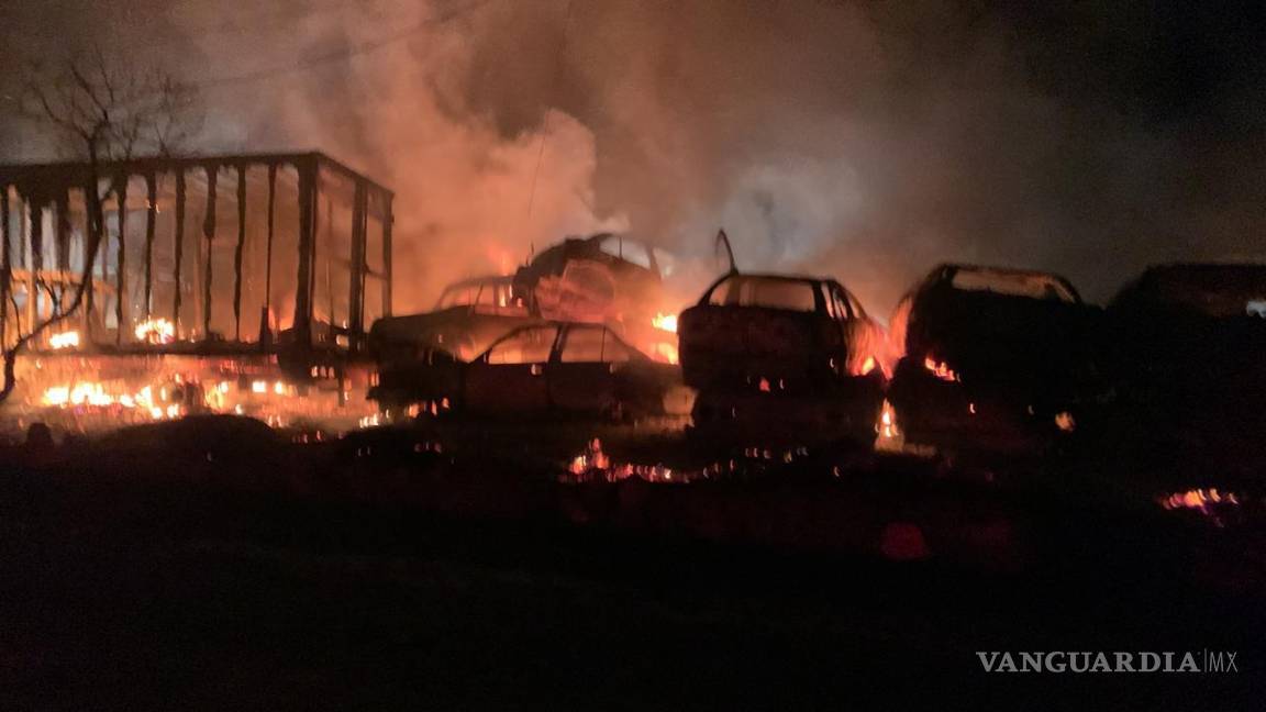 MONTERREY, NL.- Un siniestro en un corralón del municipio de Salinas Victoria, Nuevo León consumió unos 200 vehículos, la madrugada de este jueves.