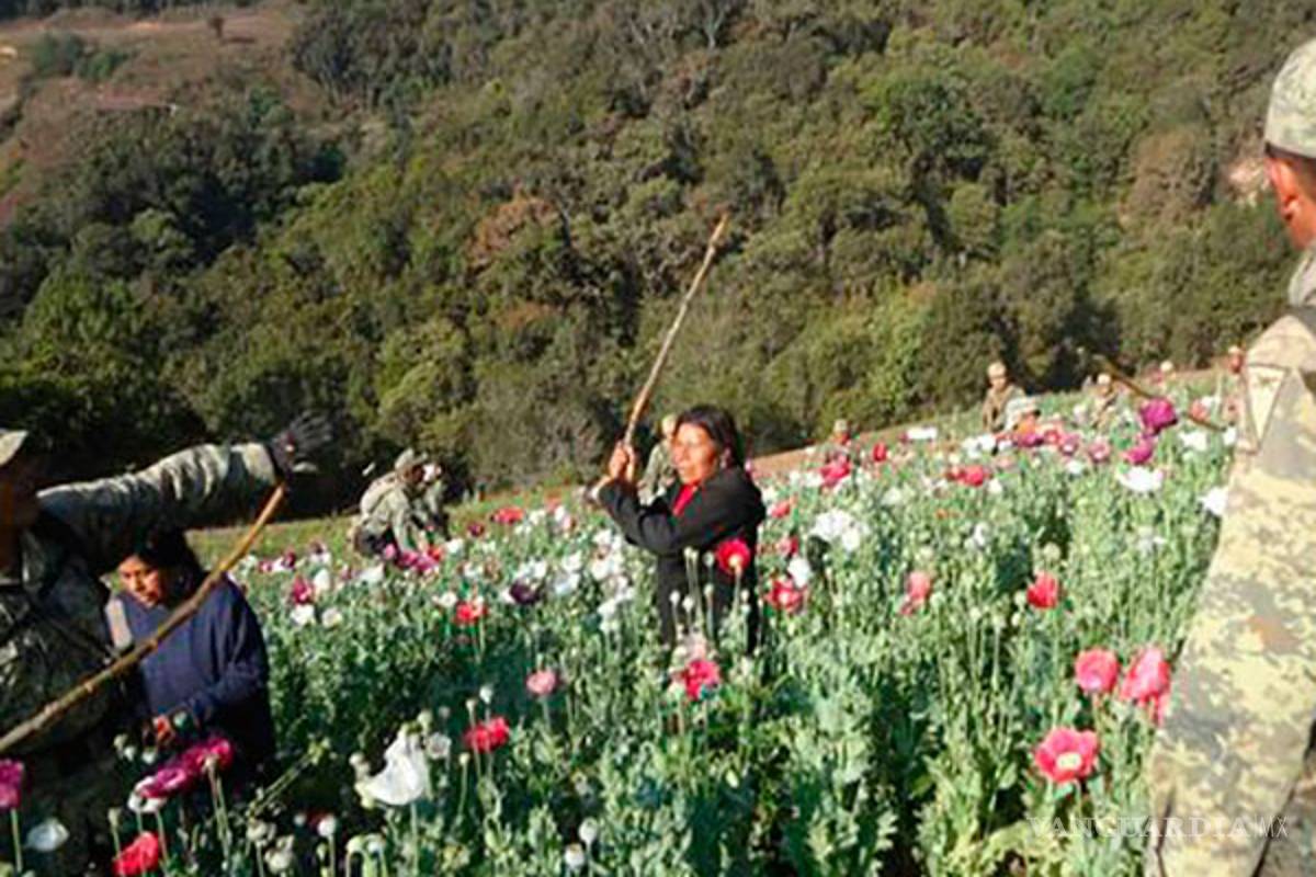 El general afirmó que, de acuerdo con las investigaciones, un grupo del crimen organizado que opera en los límites de Oaxaca y Guerrero ha empezado a reclutar a gente de bajos recursos y en condición de marginación para sembrar amapola en grandes extensiones.