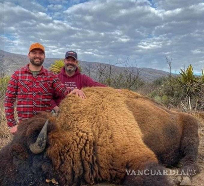 La fotografía, que circuló en redes, muestra a un hombre vestido con una camisa a cuadros color rojo y una gorra beige, y otro sujeto ataviado con una sudadera del mismo color, y bajo sus pies está tendido lo que parece ser un bisonte muerto; sin embargo no portan arma alguna.