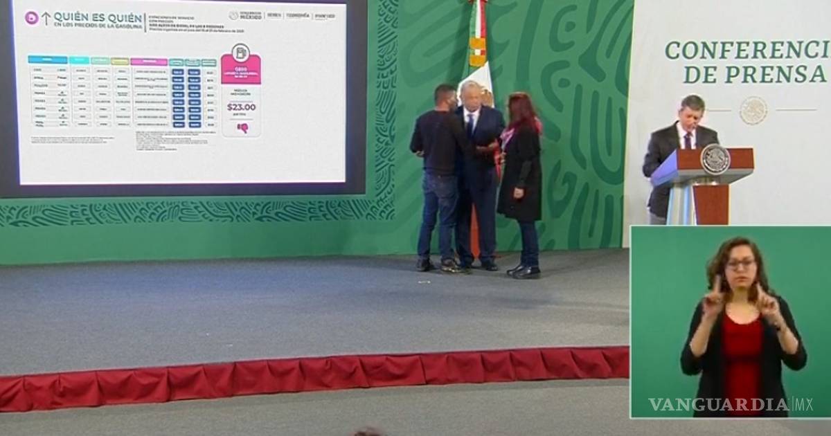 El presidente Andrés Manuel López Obrador fue abordado esta mañana por un desconocido quien se acercó a él para decirle algo. Esto mientras Ricardo Sheffield presentaba el 'Quién es quién' en los precios de las gasolinas.