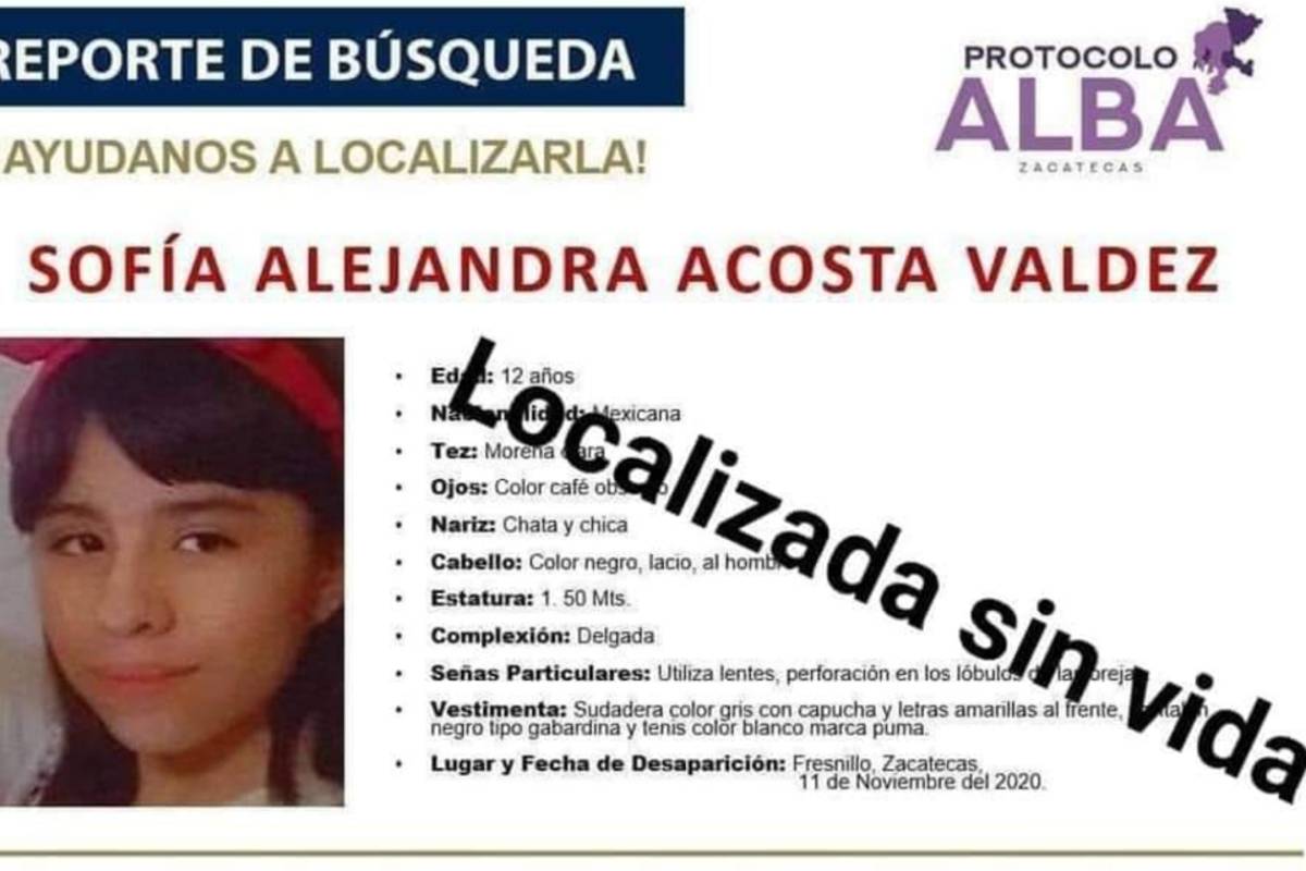 El 11 de noviembre Sofía fue secuestrada en Fresnillo. Este domingo, apareció su cuerpo. Tenía 12 años.