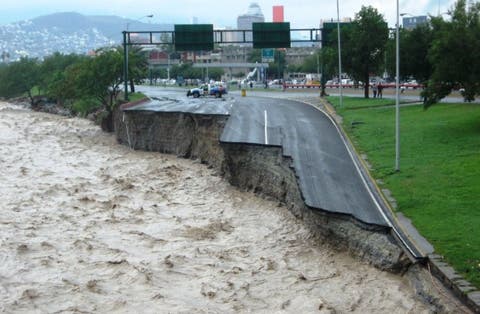 El cauce seco del río Santa Catarina cobró vida, como ocurrió con el huracán Gilberto en 1988, y arrasó con las instalaciones edificadas en su lecho así como ocasionó importantes daños en las vialidades aledañas.