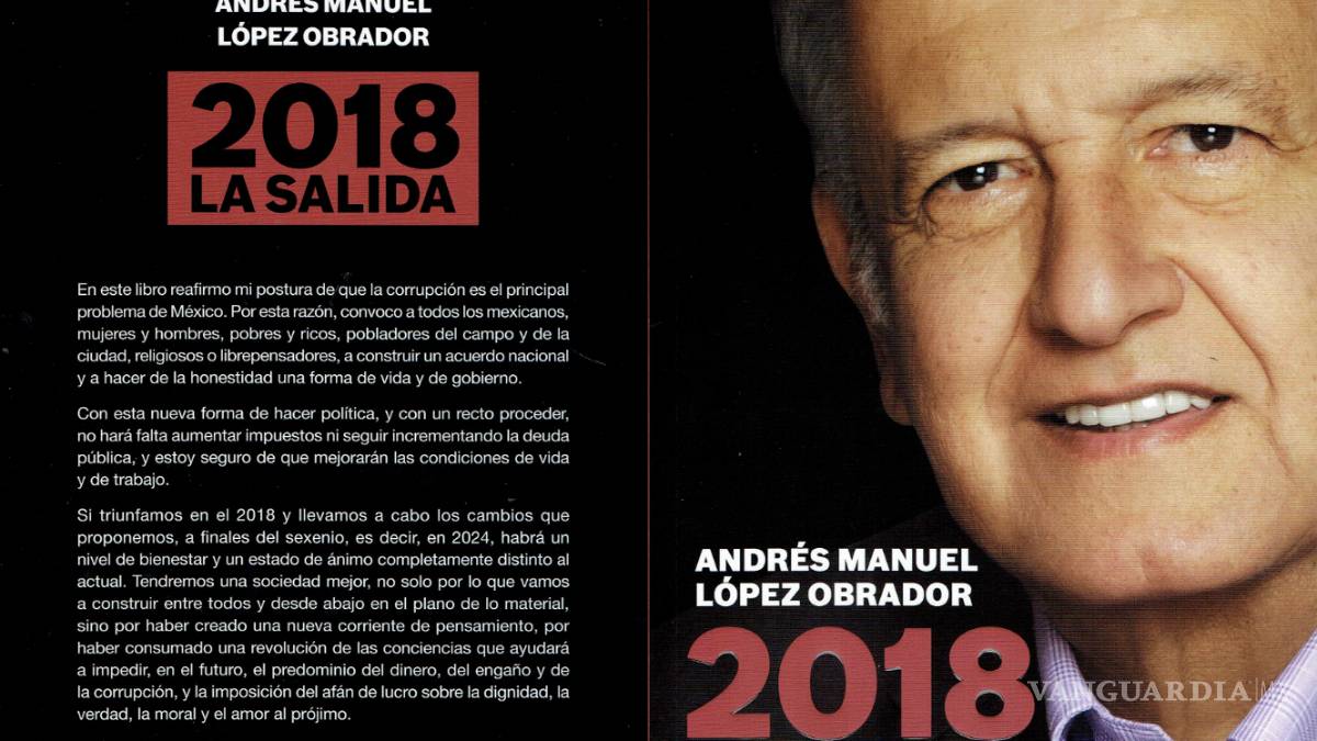 “2018 La salida: decadencia y renacimiento de México”, fue publicado a inicios de año por Editorial Planeta. En el texto de nueva cuenta AMLO presenta su diagnóstico sobre la situación actual del país ysus propuestas en caso de llegar a la Presidencia de México en 2018.