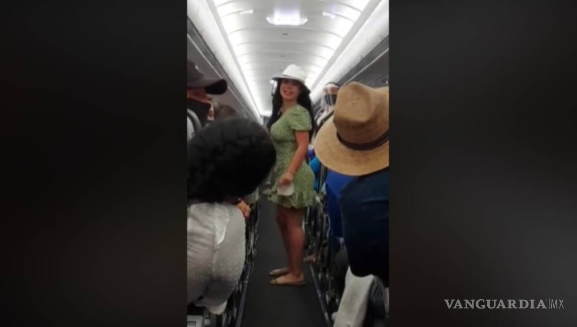 Los pasajeros que ya tenían un retraso debido al comportamiento de la mujer en Cancún, le insisten que se baje y le empiezan a canta en coro: “Que le vaya bien”, en repetidas ocasiones, pero la mujer solo baila y se burla de ellos.