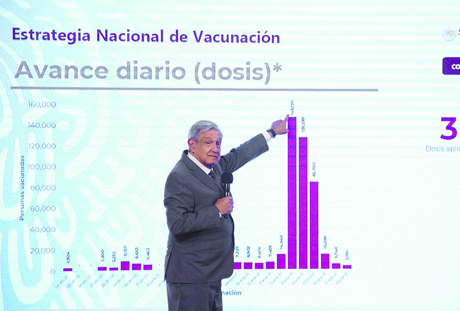 A su vez, el presidente Andrés Manuel López Obrador informó que dará a conocer a los 32 responsables estatales del Plan Nacional de Vacunación. También, por la noche volaba de Argentina hacia México una aeronave que transportaba el principio activo de la vacuna contra COVID-19 de AstraZeneca; la sustancia equivale a 6 millones de dosis que serán procesadas y envasadas en territorio nacional.