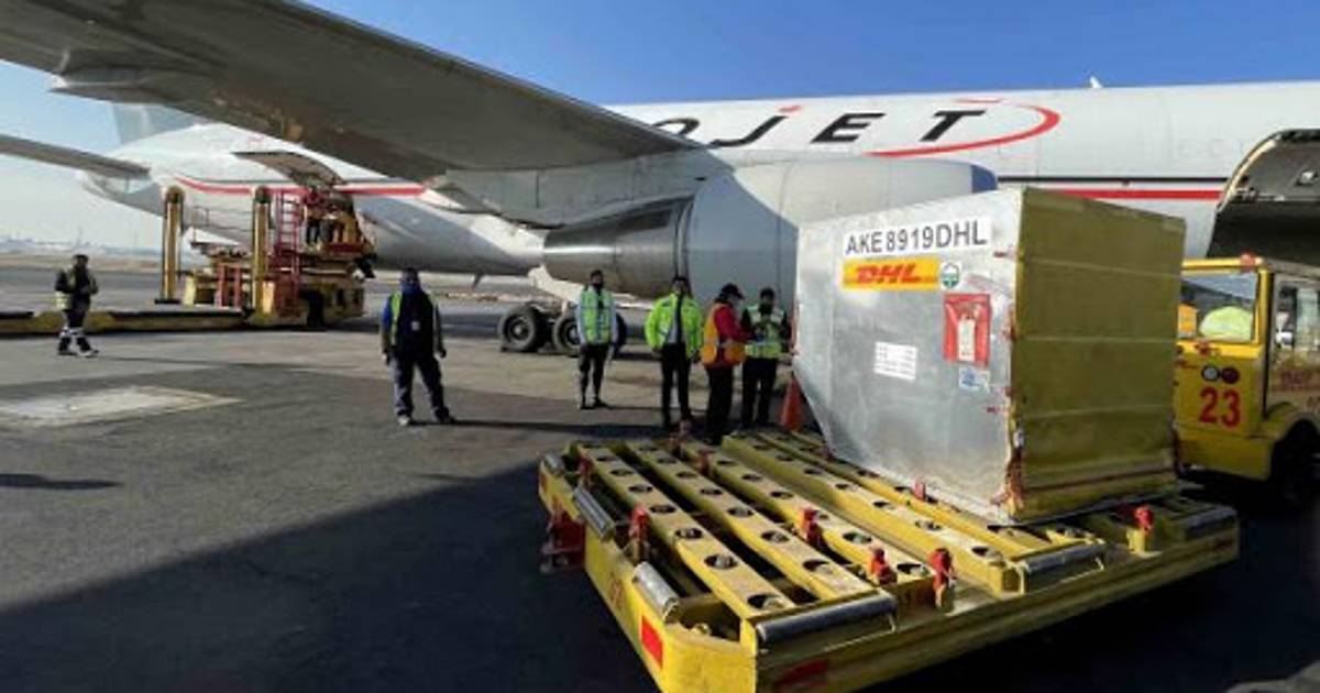 El nuevo lote de la vacuna desarrollada por la farmacéutica Pfizer/BioNTech, llegó al Aeropuerto Internacional de la Ciudad de México, como parte de los cargamentos que se reciben semanalmente y que se duplicaron a partir de este mes.