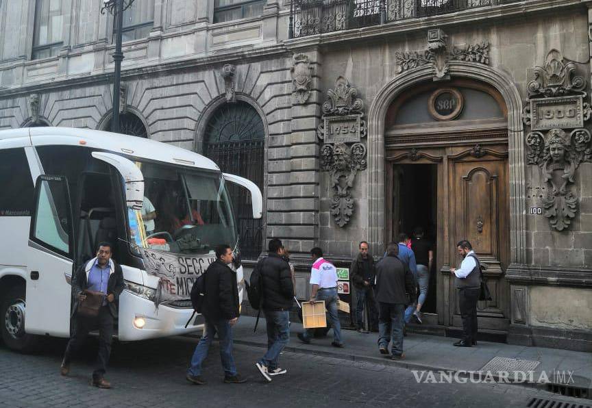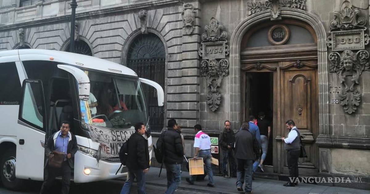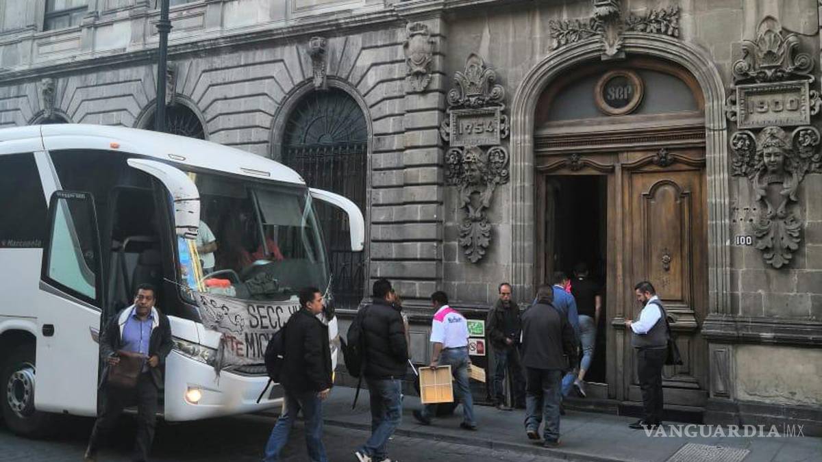 Los profesores llegaron a bordo de un camión de pasajeros color blanco que permanece estacionado frente al edificio de la SEP que se encuentra ubicado en el número 100 de la calle Donceles en en centro de la Ciudad de México, donde se encontraba la sede del Servicio Profesional Docente.