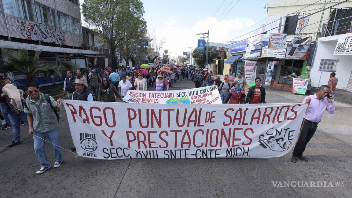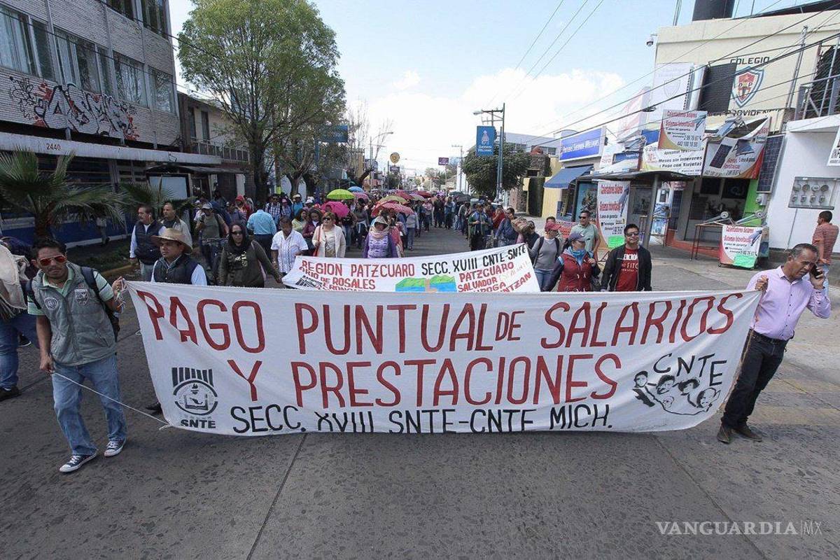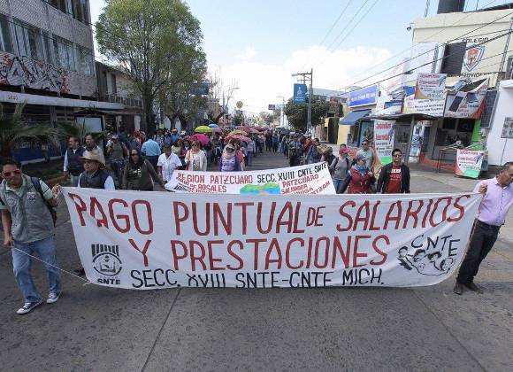 MORELIA, MICH.- A pesar del llamado de las autoridades estatales, los más de 32 mil profesores de educación básica de la Coordinadora Nacional de Trabajadores de la Educación (CNTE) no acudieron este lunes a las aulas. La CNTE reiteró que seguirá en paro hasta que el gobierno del estado les pague las tres quincenas que les adeudan.