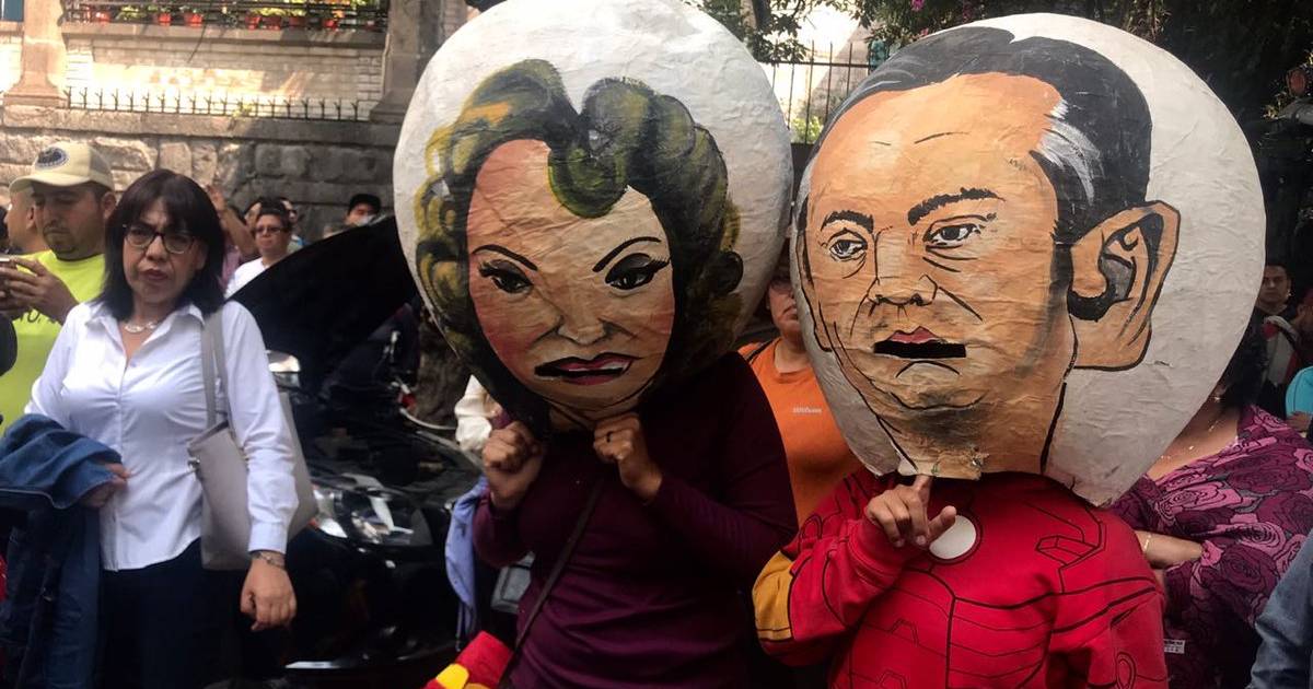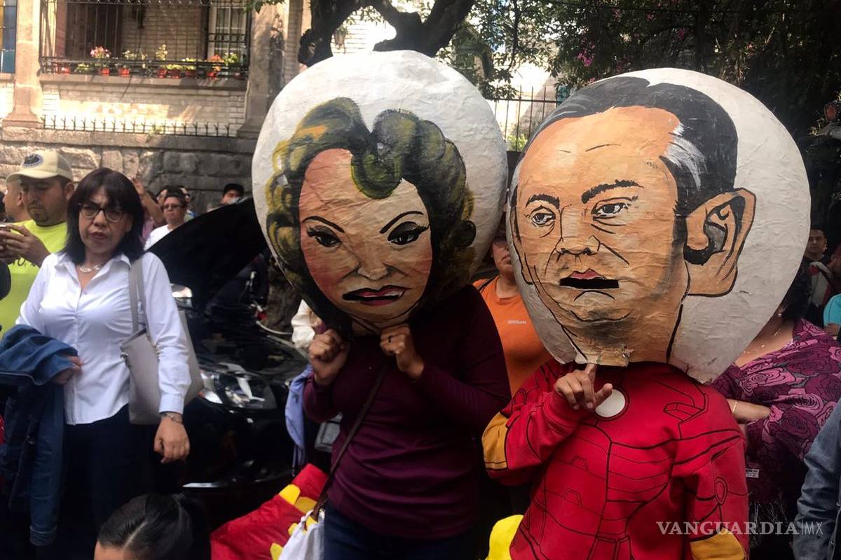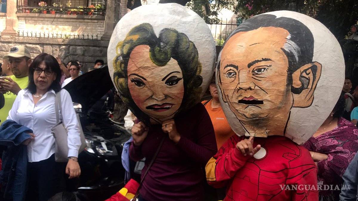 Dos de los manifestantes portan una máscara con la imagen de Gordillo y el ex secretario de Educación Pública, Aurelio Nuño