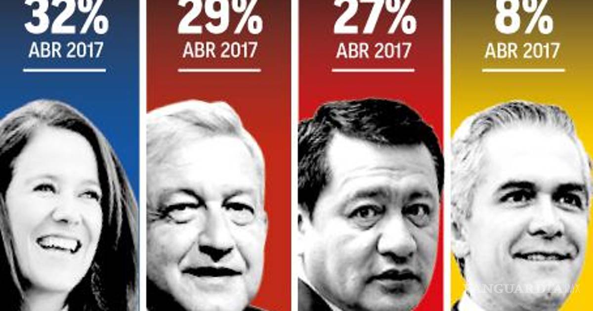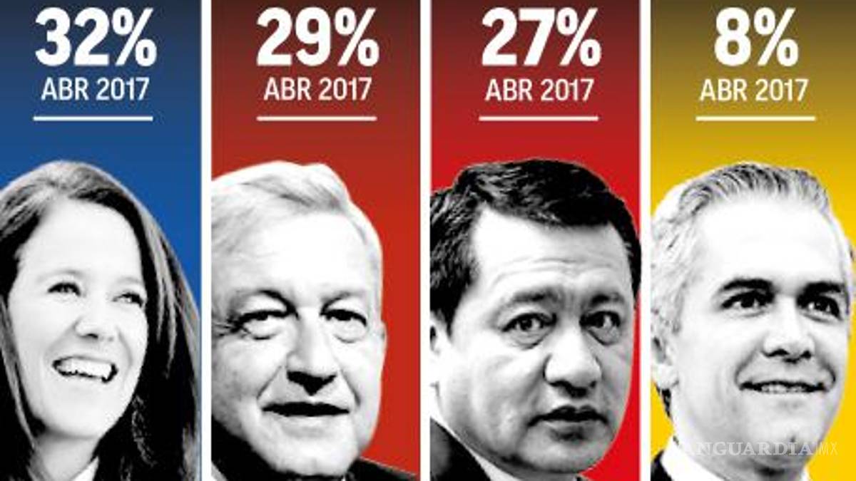 Más abajo aparecen Miguel Ángel Mancera, del PRD, con 8 por ciento, y Jaime Rodríguez, como independiente, con 4 por ciento.
