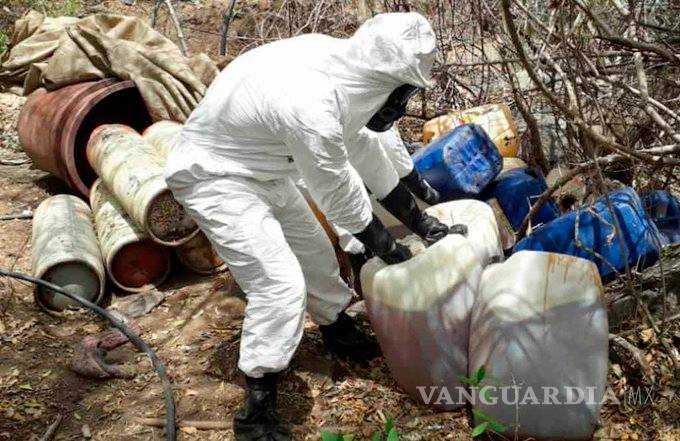 Durante un operativo en diferentes sectores de Culiacán, Sinaloa, personal de la Secretaria de Marina localizó e inhabilitó 4 narcolaboratorios, además de que aseguraron 5 mil litros de precursores para la elaboración de drogas sintéticas.