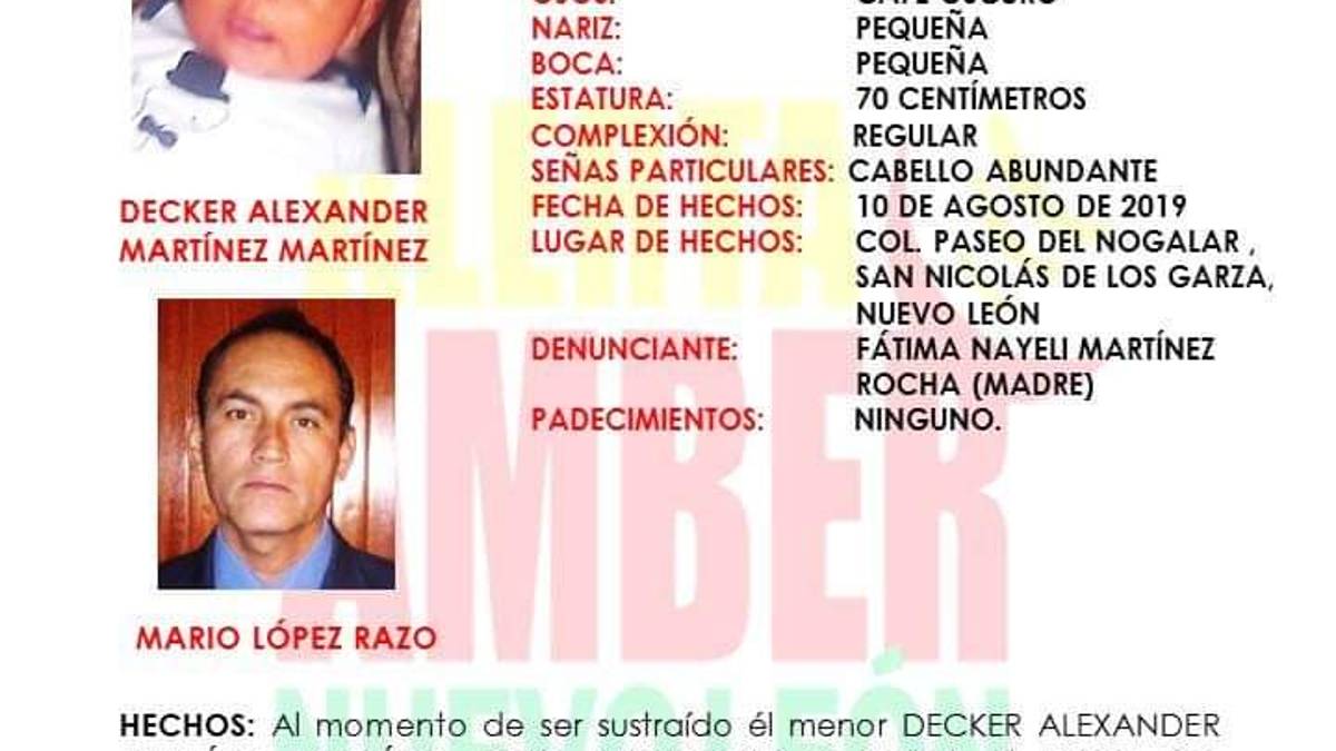 Monterrey, Nuevo León.- La Fiscalía General de Justicia de Nuevo León activó la Alerta Amber para dar con el paradero de un menor que fue secuestrado por un hombre que irrumpió en su domicilio y tras matar a su papá y maniatar a su mamá se lo llevo.