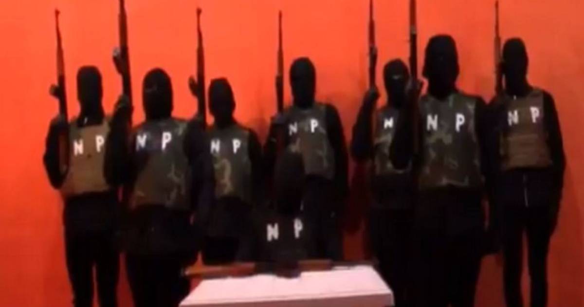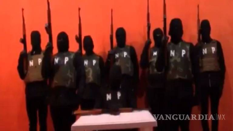 En Los videos se ve a elementos del cártel con un uniforme oscuro, pasamontañas y portando armas larhas y chaleco antibalas con las siglas 'NP'.
