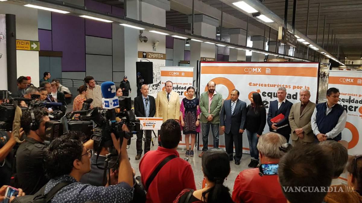 La exposición puede verse en la estación Zapata de la Línea 12 y lleva por nombre “Caricaturistas por la Equidad de Género. Por una vida más en equilibrio”.