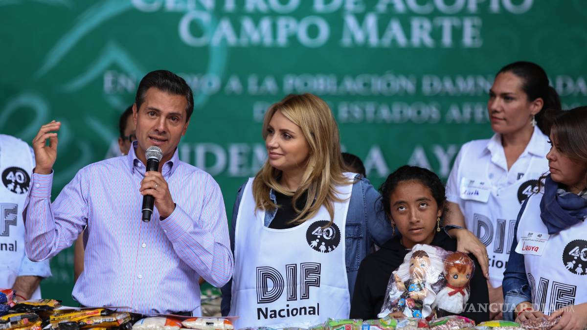 El Presidente visitó el Centro de Acopio que el DIF nacional ubicado en el Campo Marte, acompañado por su esposa Angélica Rivera y expresó que su gobierno dispuso un operativo para asegurar que todas las despensas sean entregadas a los verdaderos damnificados.
