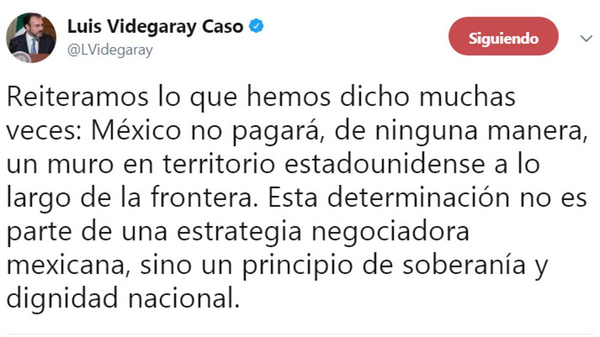 México no pagará muro fronterizo, contesta Gobierno a Trump