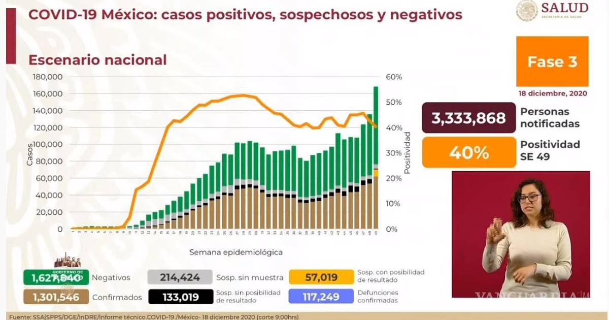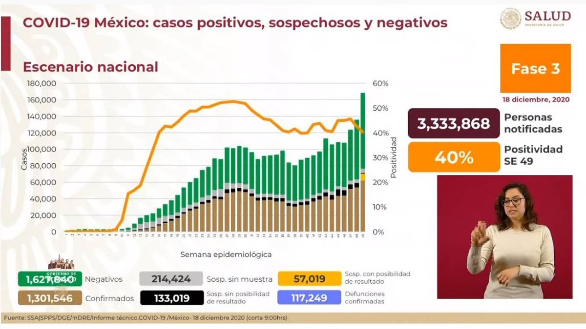 En el último reporte, del 17 de diciembre, fueron confirmados un millón 289 mil 298 casos positivos y 116 mil 487.