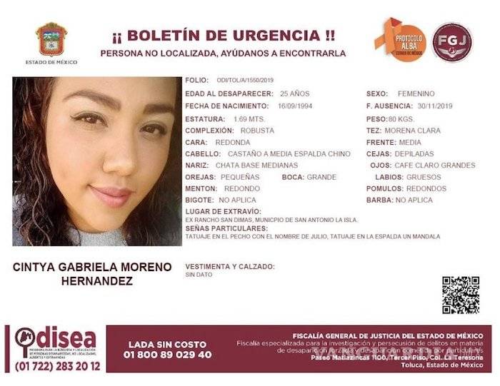 Sus familiares reportaron su desaparición ante la Fiscalía General de Justicia mexiquense, en tanto en redes sociales, se compartió su fotografía y datos generales para dar con su paradero, pero no se tuvo éxito.