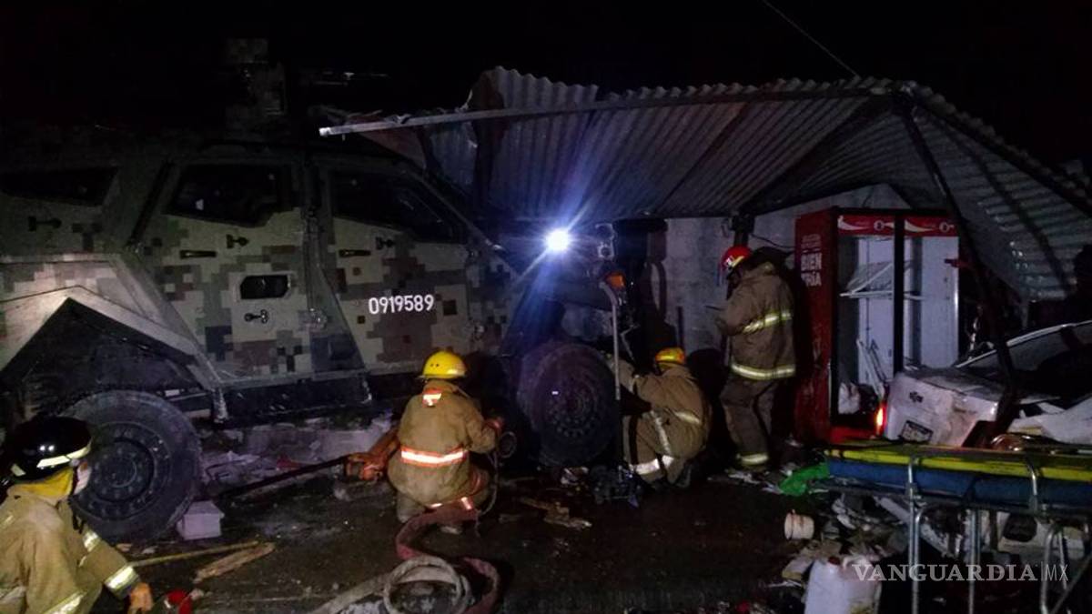 El vehículo militar recibió una ráfaga directa de los agresores sobre el parabrisas, provocando la pérdida de visibilidad del conductor, el cual fue impactado inmediatamente por la camioneta Silverado, lo que propició que perdiera el control y se proyectara contra dos vehículos y una taquería, manifestó.