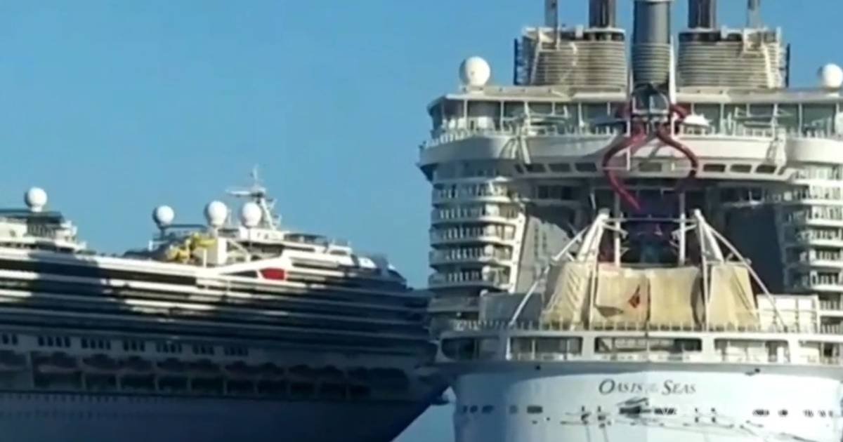 ? La proa de un crucero con 4 mil pasajeros a bordo colisionó con el costado de otro atracado, en muelle #PuertaMaya. ?️#CarnivalGlory golpeó al #CarnivalLegend y luego al #OasisOfTheSeas. Solo hubo daños materiales pic.twitter.com/GKM3XMpXaD