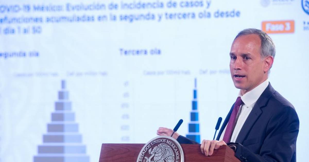 Durante la conferencia de prensa matutina de este martes en Palacio Nacional que encabeza el presidente Andrés Manuel López Obrador, el funcionario mostró una gráfica sobre la proporción de fallecimientos por Covid-19 en comparación con los contagios, tanto de la segunda ola como de la tercera.