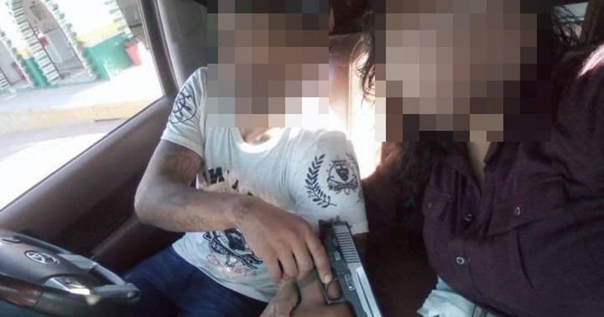 La Fiscalía analiza una serie de fotografías que la ex agente de la Policía Michoacán publicó en Facebook, en donde aparece el individuo que porta armas de uso exclusivo del Ejército y con las iniciales del grupo delictivo del vecino estado de Jalisco.