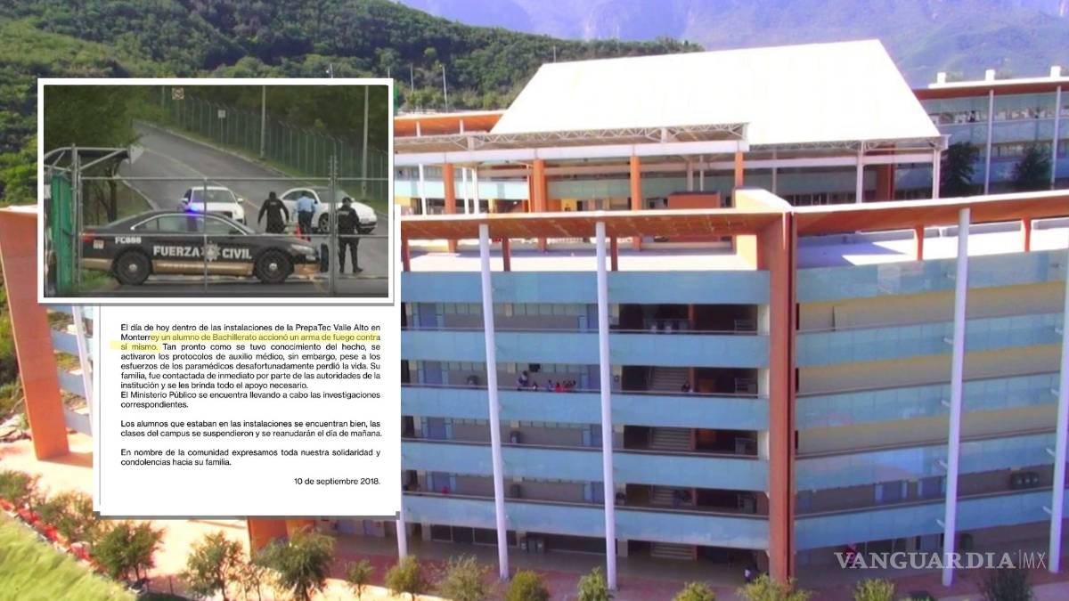 Un alumno murió de un disparo en la cabeza en las instalaciones de la #PrepaTec, ubicada en la Colonia Valle Alto, sobre la Carretera Nacional, al sur de Monterrey. pic.twitter.com/y74mRgxdgc