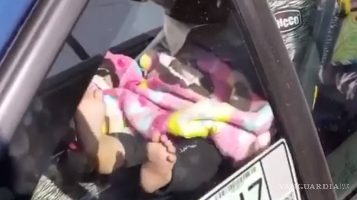 En el video se puede ver cómo un franelero del lugar colocó una publicidad sobre el toldo de dos autos para que hiciera sombra a la menor, quien lloraba dentro de la unidad.
