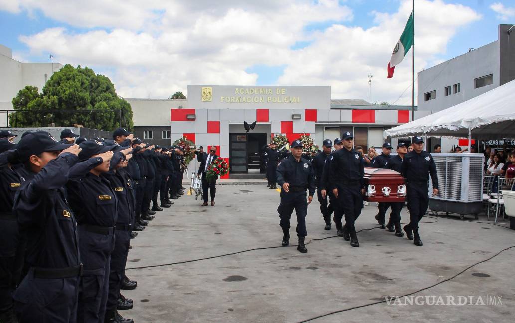 MONTERREY, NL.- Autoridades de Apodaca despidieron con honores a la mujer policía que fue acribillada el martes por desconocidos que dispararon a la patrulla en la cual se desplazaba en la zona de hoteles del Aeropuerto Internacional de Monterrey.