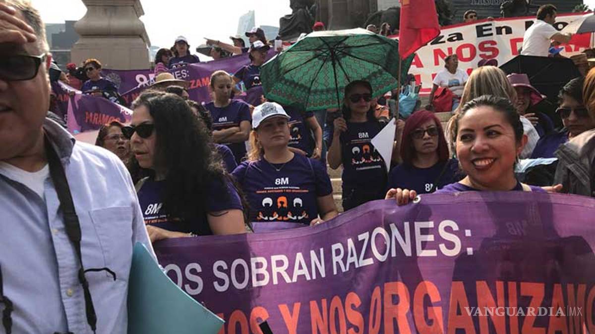 En el marco de la conmemoración del Día Internacional de la Mujer, mujeres capitalinas se reunieron en el Ángel de la Independencia para marchar hacia el Hemiciclo a Juárez