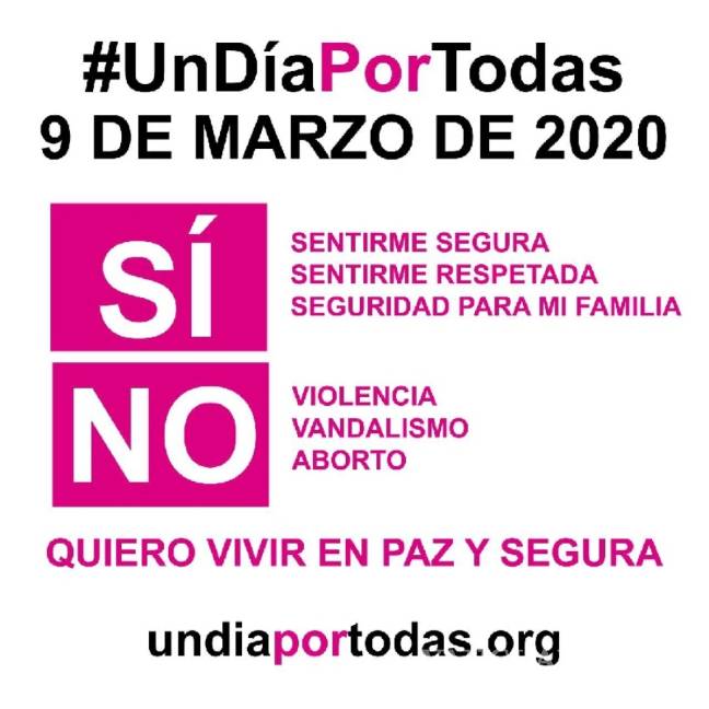 "No a la violencia. No al vandalismo. No al aborto", se lee en la página web oficial de "Un día por todas".
