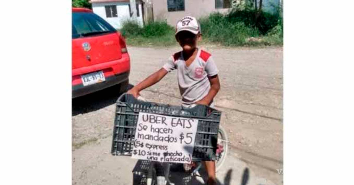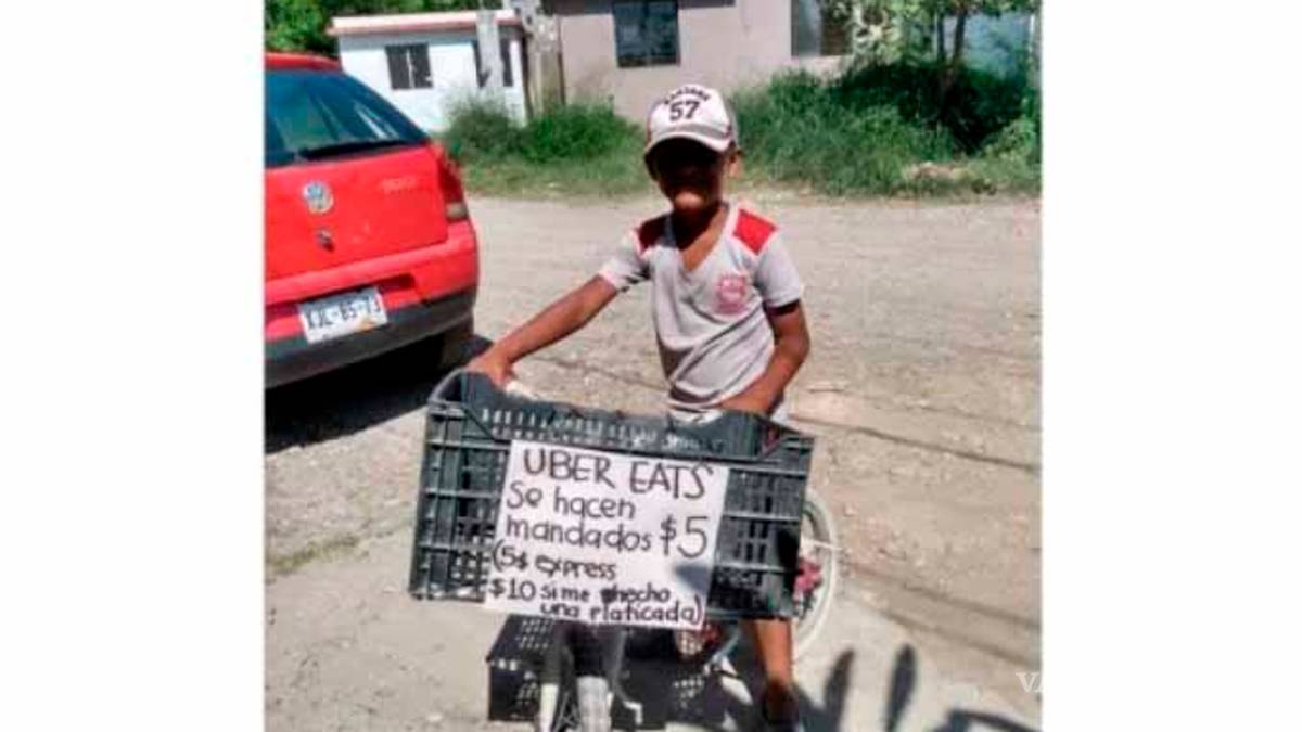 Iker Alfredo Rodríguez, originario de Ciudad Victoria, Tamaulipas, diario sale en su bicicleta a buscar clientes portando un cartel con el siguiente mensaje:“UBER EATS. Se hacen mandados $5, $10 si me hecho una platicada”.
