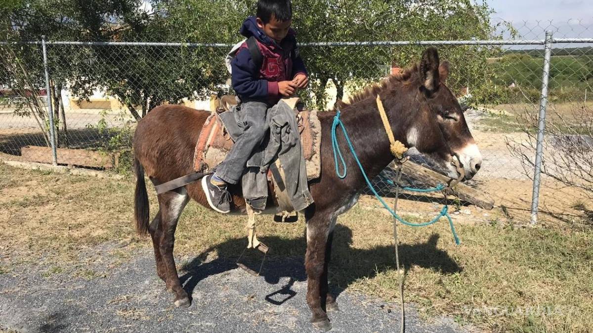 Niño se traslada todos los días en un burrito hacia su escuela