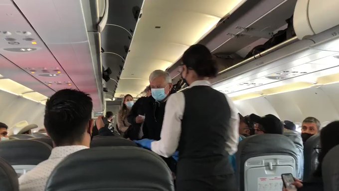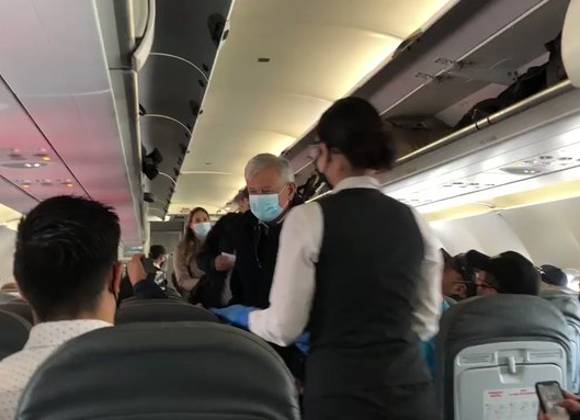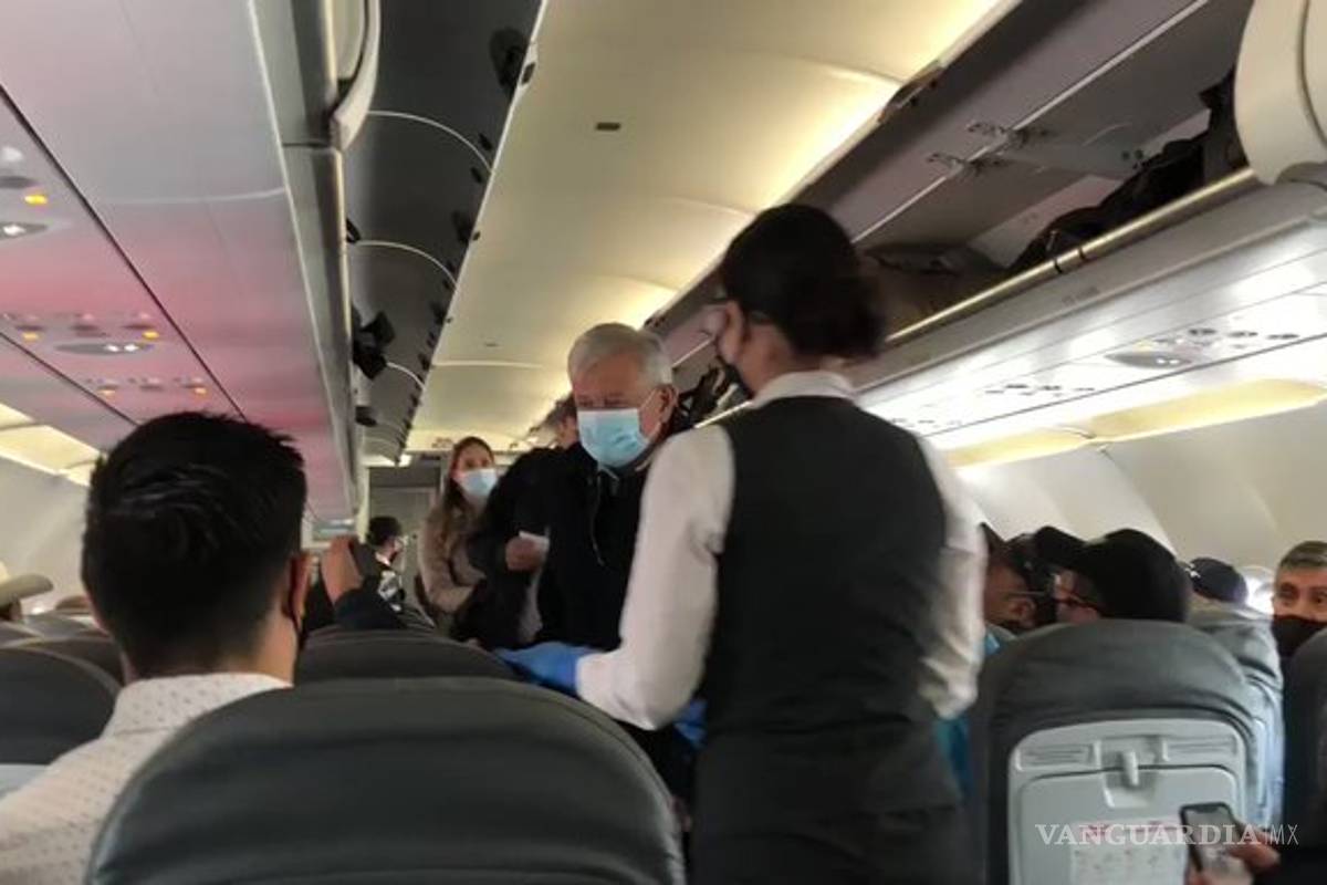 En un video subido a redes sociales por el periodista de El Heraldo de México, Francisco Nieto, se puede ver cómo ingresa López Obrador al avión y una sobrecargo lo lleva hasta su asiento, ahí empiezan los aplausos de los pasajeros y expresiones a su favor como "presidente, presidente", sin embargo, el júbilo fue interrumpido por un hombre que le grita: "prometiste y no cumpliste".