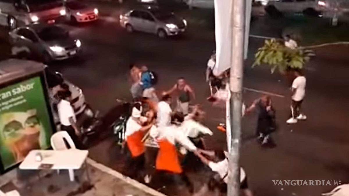Según la nota del suceso, la pelea ocurrió en Acapulco, cuando clientes en estado de ebriedad se negaron a pagar la cuenta. Los clientes y meseros se golpearon con sillas y mesas.
