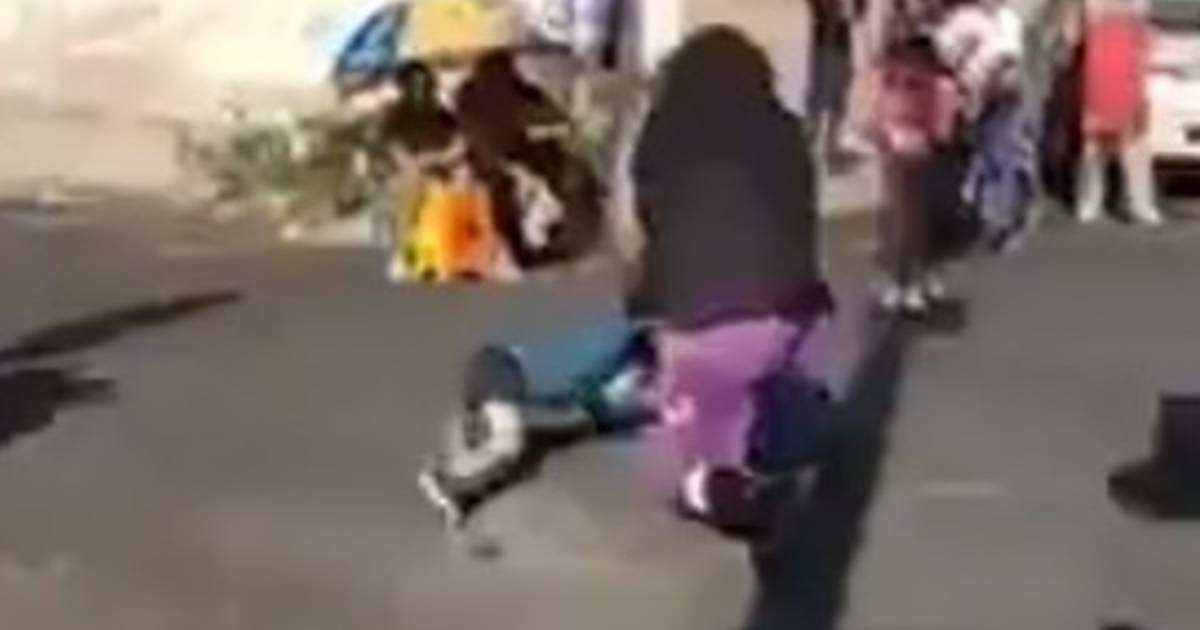 En las imágenes se ve al niño colgado de la espalda del luchador que le levanta el brazo y lo arroja contra el asfalto, en el que quedó inconsciente por unos segundos.