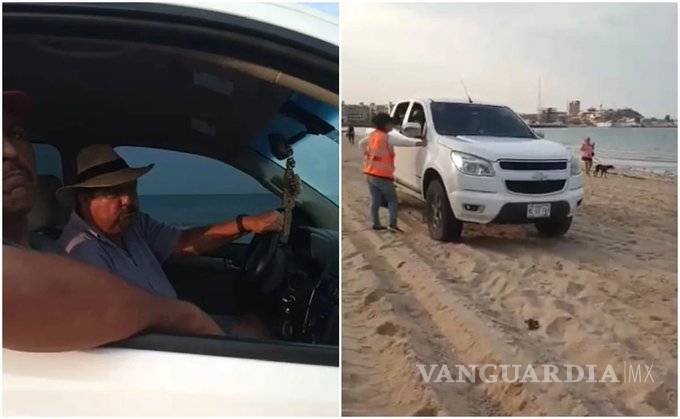 Papá de alcaldesa de Hermosillo pasea en la playa ¡con su camioneta!