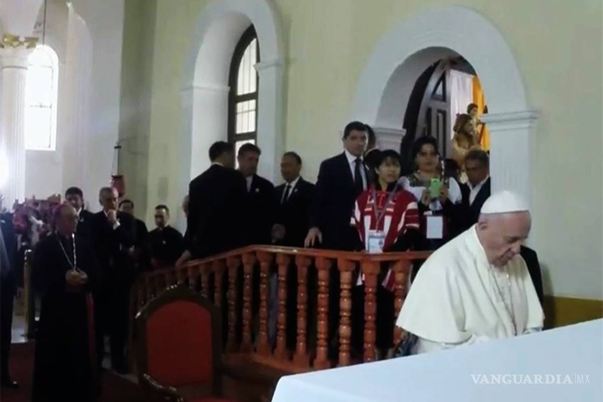 SAN CRISTÓBAL DE LAS CASAS.- En su visita a la Catedral de San Cristóbal de las Casas, el Papa Francisco oró de pie frente a la tumba del obispo Samuel Ruiz.