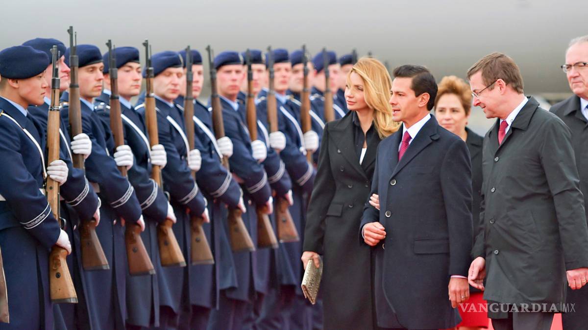 Peña Nieto será recibido por la mañana con honores militares por el presidente federal alemán, Joachim Gauck, y la compañera de éste, Daniela Schadt, en el Palacio Bellevue de la capital alemana, comunicó la secretaria de Información del gobierno alemán.