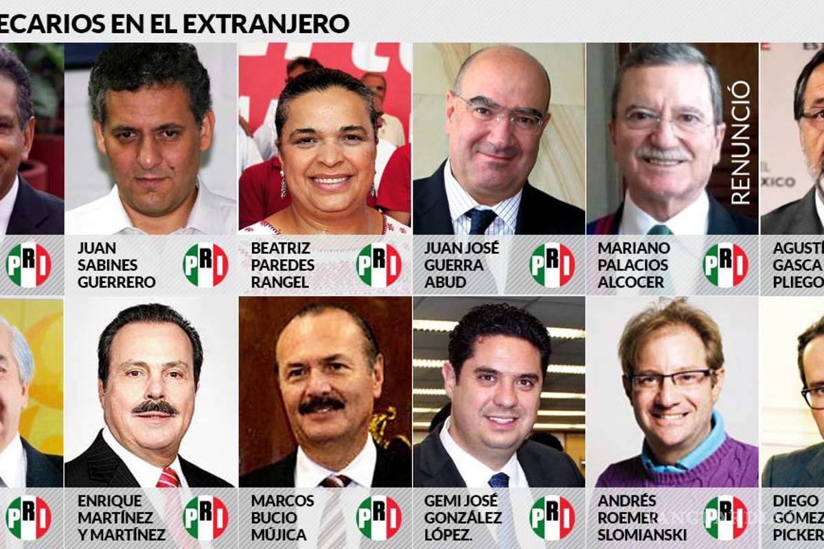 Entre esos nombramientos estuvieron los del ex Gobernador coahuilense Enrique Martínez y Martínez como nuevo Embajador en Cuba, cargo al que llegó después de haber ocupado la Secretaría de Agricultura, Ganadería, Desarrollo Rural, Pesca y Alimentación (Sagarpa) los primeros tres años de Peña Nieto; el de Marcos Bucio, también ex funcionario de Sagarpa, del CEN de PRI y nuevo cónsul de México en El Paso, Texas, y el de Gemi José González López, ex subprocurador jurídico de la Procuraduría Federal de Protección al Ambiente (Profepa), hijo del ex dirigente priísta José Antonio González y ahora Cónsul en San Francisco, California.
