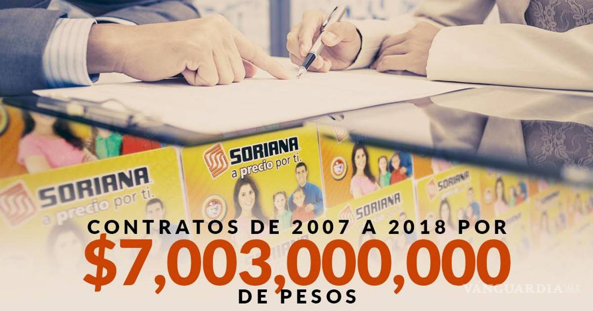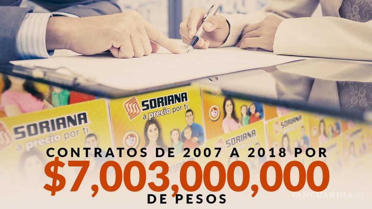 Durante la administración de Felipe Calderón Hinojosa (2006-2012) y en los primeros cinco años de la de Enrique Peña Nieto (2012-2017), Tiendas Soriana recibió 880 contratos por 7 mil 003 millones 438 mil 275 pesos.