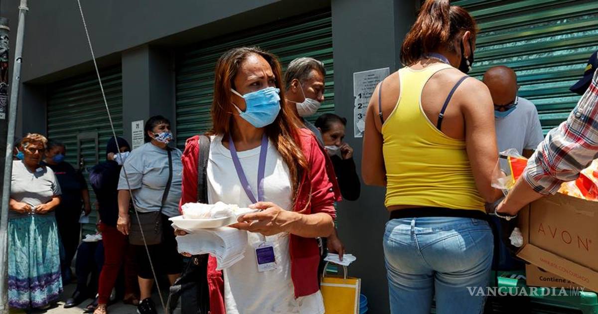 Gracias a la acción solidaria de la asociación Casa de las Muñecas Tiresias conformada por mujeres transexuales en la Ciudad de México personas de escasos recursos reciben un plato de comida en momentos en México está en la fase 3 de la pandemia del nuevo coronavirus el COVID-19