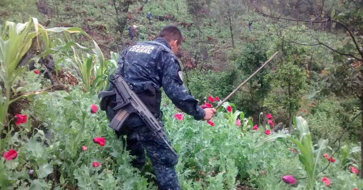 En la localidad de Trapiche fue hallado un predio con más de 119 mil kilogramos de amapola, así como un terreno con aproximadamente dos mil plantas de mariguana