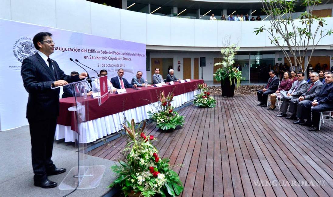 Después de inaugurar los Tribunales y Juzgados de Distrito en el XIII Circuito de Oaxaca, el Consejero pidió a los juzgadores federales emitir sentencias que resarzan conductas que agravian a la sociedad, “ya que su legitimidad se encuentra en el quehacer cotidiano”, sostenido con la capacidad intelectual y honradez de los actos que realizan todos los días.